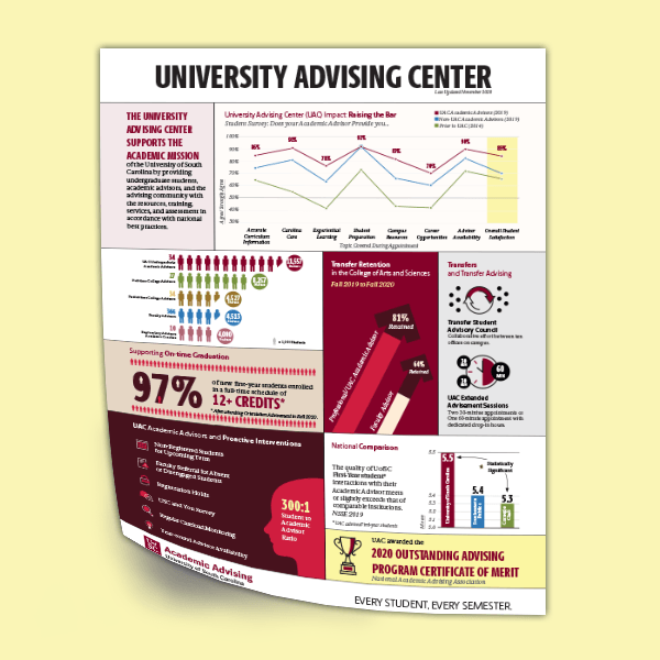 As the University Advising Center approaches its tenth year, much has been done to standardize academic advising efforts across campus. The UAC's 2021 Impact Report, Excellence and Equity in Academic Advising, seeks to highlight the work of all academic advisors and the impact they have on every student, every semester.