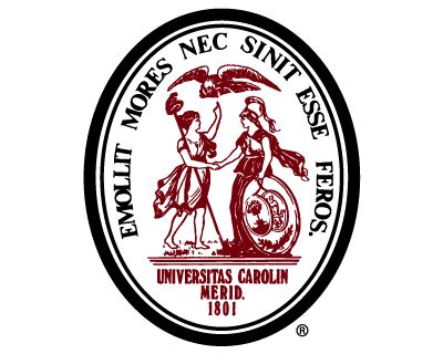 The university seal, which dates back to 1803, quotes the Latin poet Ovid, "Emollit Mores Nec Sinit Esse Feros," which is translated as "Learning humanizes character and does not permit it to be cruel." Beneath the words are Liberty and the goddess of wisdom, Minerva, who bears a shield decorated with the South Carolina state seal. The words and image remind us that a university education builds both intellect and character. The Latin inscription below the figures is the school name and founding year of 1801. The seal identifies formal university occasions such as commencement and board matters. You must have permission from the secretary of the Board of Trustees to use the seal.