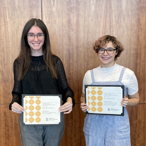 The students were selected by a seven-member review panel made up of Libraries faculty and teaching faculty from across campus. The winners received a monetary award and a personalized award certificate. Their achievements will be recognized with a placard displayed in Scholars Corner in Thomas Cooper Library until next academic year’s winners are announced.