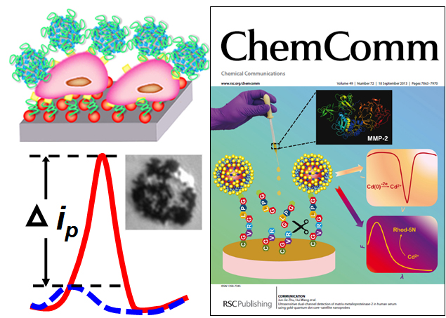 The past two decades have witnessed significant progress on the development of robust analytical tools with high sensitivity, selectivity, and reproducibility toward early diagnosis of cancer. Electrochemical cytosensing has emerged as an extremely attractive method that can be readily implemented into quantitative bioassays for high-throughput clinical applications. Utilization of rationally designed multifunctional nanoprobes and specifically tailored nano-biointerfaces for electrochemical cytosensing provides unique opportunities to optimize the interfacial electron transfer and cell recognition processes, allowing for the integration of large signal amplification, enhanced detection specificity, and expanded multiplex sensing capabilities on one cytosensor. Our group has been working on the design and fabrication of multifunctional hybrid nanoprobes for selective and ultrasensitive electrochemical detection of a variety of cancer cells, such as leukemia cells and circulating tumor cells. Our electrochemical approaches also allow for the quantification of the expression levels of important biomarkers on the cancer cell surfaces.